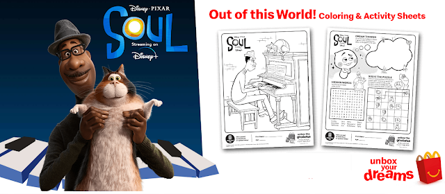 미국은 디즈니 애니메이션 "소울" 활동지와 열쇠고리 같은 장난감이네요.